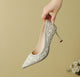 Cinderella court shoes featuring a statement bow embellished with shimmering crystals. Available in classic black and rose gold. These pointed-toe pumps bring sophistication and glamour to every outfit. The slim high heel elongates your silhouette, while the satin finish and...