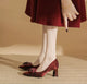 Women’s faux leather block heel pumps, featuring a pointed toe and a chic metallic buckle detail. The smooth faux leather finish adds sophistication, while the mid-block heel ensures lasting comfort for all-day wear. A versatile design ideal for casual wear,...