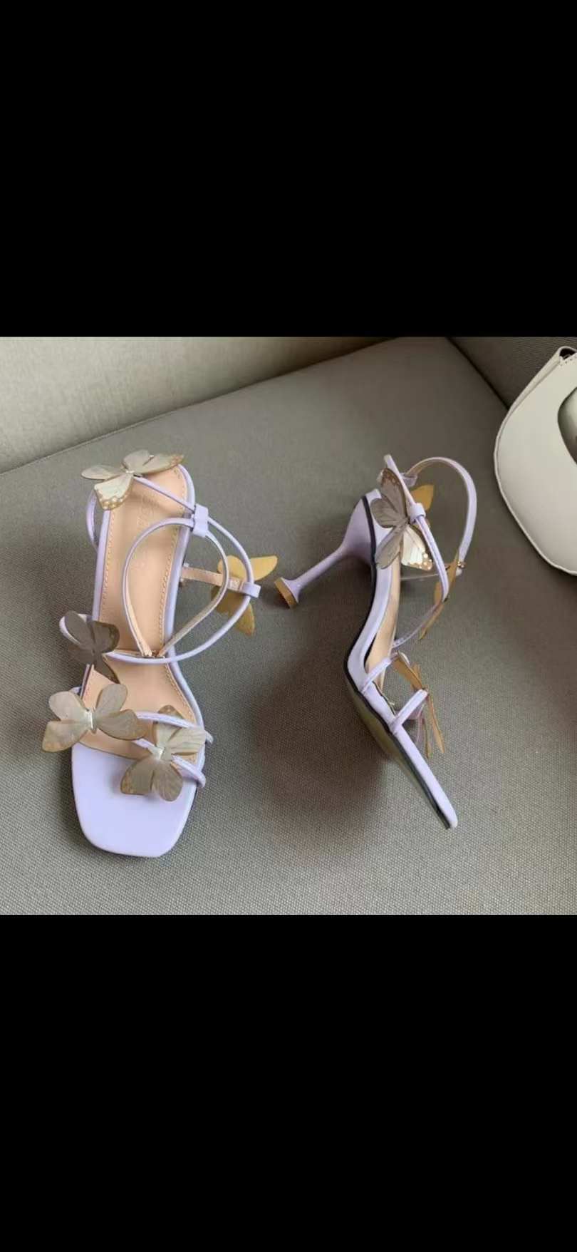 Step into playful elegance with these Lilac Butterfly Heels, designed as open-toe sandals with delicate butterfly accents on the straps. Available in soft lilac and classic off-white, they bring a whimsical yet chic touch to your look. The easy-to-carry heel...