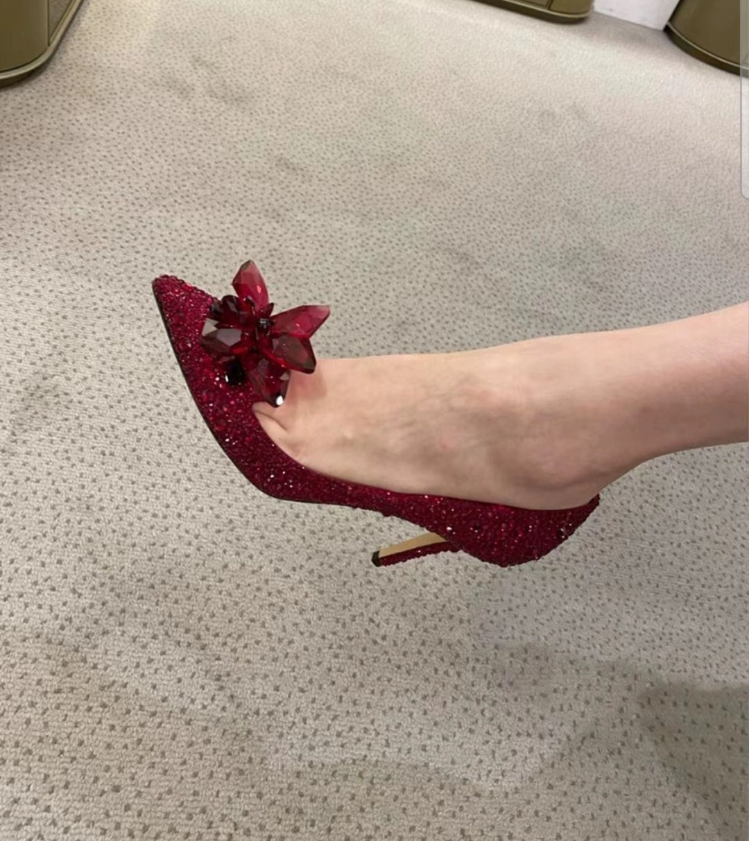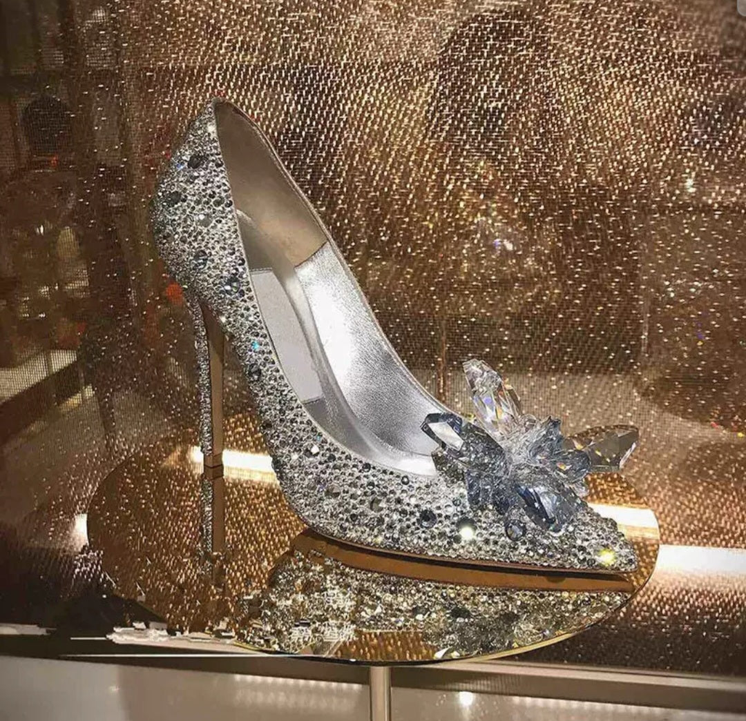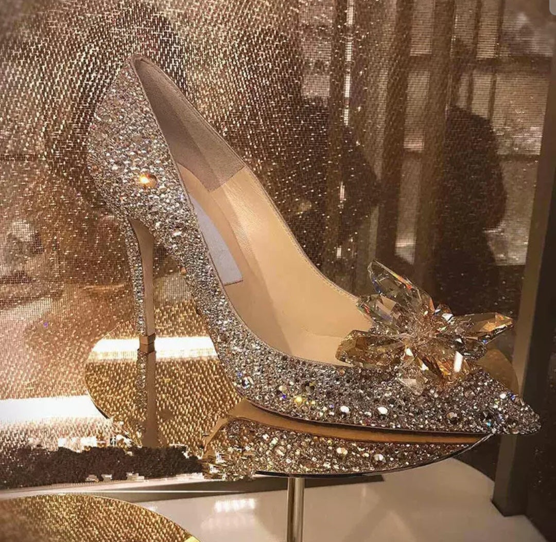 Sparkle with luxury in these women’s Jimmy Choo inspired crystal heels, available in gold, silver an red designed with a pointed toe and embellished with shimmering rhinestones all over. The stunning 3D crystal flower at the front makes them a...